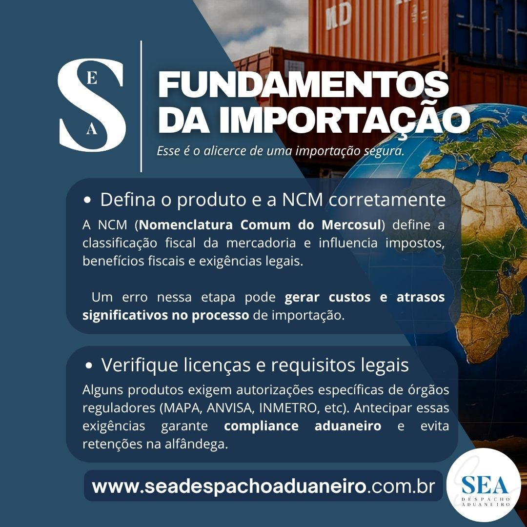 Neste carrossel, reunimos os principais passos para estruturar sua importação com segurança e previsibilidade, desde a definição correta da NCM até o acompanhamento do desembaraço.